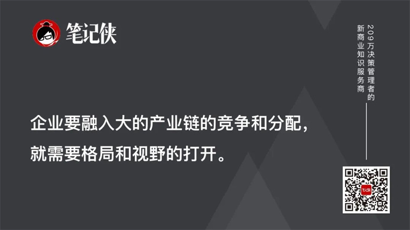 现在,企业要融入大的产业链的竞争和分配,就需要格局和视野的打开。
