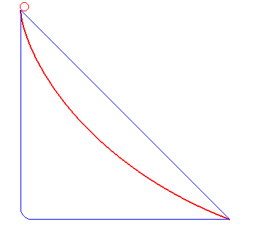 如上图所示,红色的这条线是最快的,这就是最速曲线。