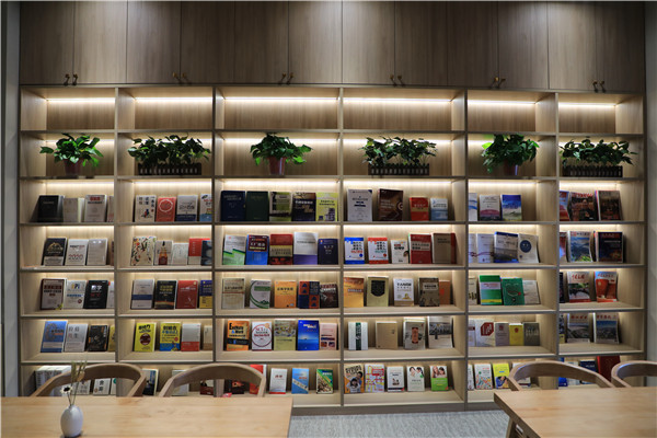 阅览室布置于集团总部1号楼一楼,面积约100平方米,宽敞明亮,环境优雅,集新书展示、期刊阅览、自学阅览、电子读书于一体,无线网络全覆盖,配置高清投影,设施齐全,功能完备。配置20余个阅览座位,每张阅览桌上方都安装射灯,方便读者阅读书刊?;股柚昧俗诺牟栊?,并配备存包柜,方便读者休息和保存贵重物品。为保障员工扩大知识面需求,阅览室摆放了400余册书籍,以及各类杂志50余种。开放时间为上午9:00至下午7:00,并指定专人负责管理。